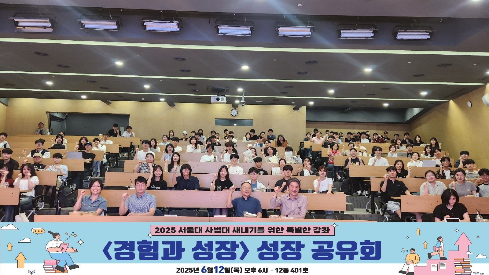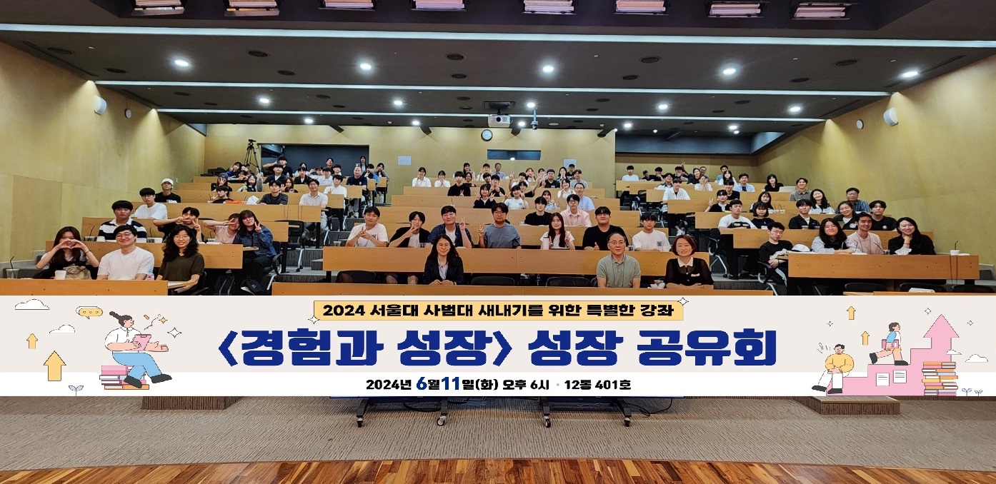 경험을 통해 성장을 이루다. 사범대학 ‘경험과 성장’ 성장 공유회 (원문)https://www.snu.ac.kr/snunow/snu_story?md=v&bbsidx=156281 서울대 뉴스 발췌